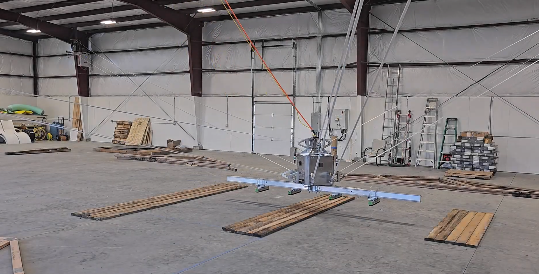 This video takes the cable robot concept further, adding a full simulation to show the complete proposed application. From picking stock out of mixed bunk lengths to placing it on a simulated linear saw infeed, this demo highlights how the system can remove manual handling and improve efficiency in real-world truss plants.
